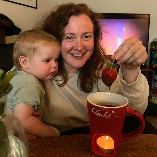Using the Fondue Mug is as effortless as it is fun. All you need is your favorite chocolate and a small tealight candle. Place the candle in the holder at the bottom, light it up, and add chocolate to the cup. In just about 5 minutes, it melts into a smooth, rich dip... perfect for fruit, marshmallows, cookies, or anything you love. Simple, cozy, and always delicious.